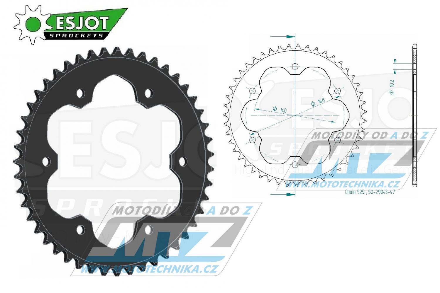 Rozety ESJOT díky použitému materiálu, nejmodernějším výrobním technologiím a povrchové úpravě splňují nejpřísnější parametry kvalitativních norem a jejich výsledná kvalita převyšuje jak originální řetězová kola, tak i většinu druhovýrobních značek, které jsou vyráběny téměř výhradně v Asii. Důkazem toho je i skutečnost, že řetězová kola ESJOT jsou dodávána do prvovýroby světoznámých značek jako KTM, Husqvarna, BMW, Aprilia, Ducati a další...